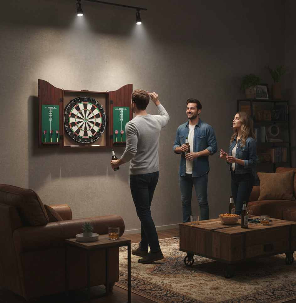 Installer une cible avec fléchettes à pointe acier, c’est créer un petit espace simple où l’on se retrouve. Deux pas de recul, un marquage au sol, et la partie peut commencer en solo pour s’entraîner, ou à plusieurs pour se challenger sans prise de tête.